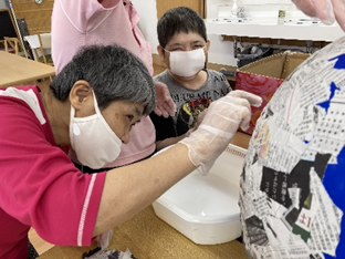 施設blog 【ぽらりす】ハロウィン準備✨ 2023年11月6日 2023年11月6日 Facebook Twitter はてブ 「 ピニャータを作ろう!!」 今年もピニャータを作るぞ!!まずは土台になる新聞紙をちぎっていきます☺ スタッフと協力して新聞紙を引っ張るよ♪なかなかちぎれないな~💦 たくさんちぎれました!!「すごいですね~☺」 新聞紙がちぎれたら、風船に貼っていきます♪ 風船が見えなくなるまで貼っていくよ☺あともう少し!! 今年はどんなデザインのピニャータが完成するか楽しみです☺ Facebook Twitter はてブ