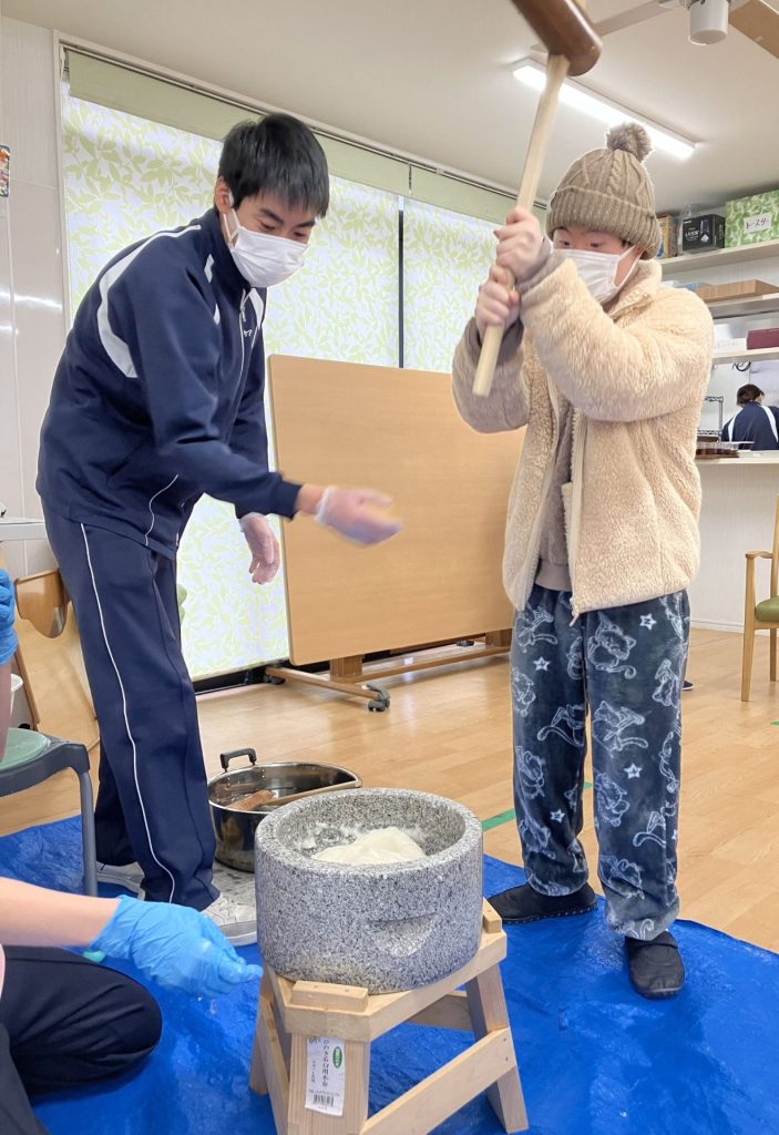 施設blog 【Ma-Na 】餅つき大会in2026!! 2026年2月3日 2026年2月3日 Facebook Twitter はてブ 美味しくな~れ♪ 今年も毎年恒例の餅つき大会を行いました♪今から完成が楽しみですね☆ 勢いよく杵を振りかぶり、力強く餅をついて下さっています😊 味は砂糖醬油、きな粉、大根おろしとご用意させていただきました。どれにしようか迷ってしまいますね・・・。 「つきたてのお餅は柔らかくておいしいね~☆」「もっと食べたかったな~~!!」というお声が聞かれました。 皆さま笑顔で完食され、大好評のもちつき大会となりました♪ Facebook Twitter はてブ