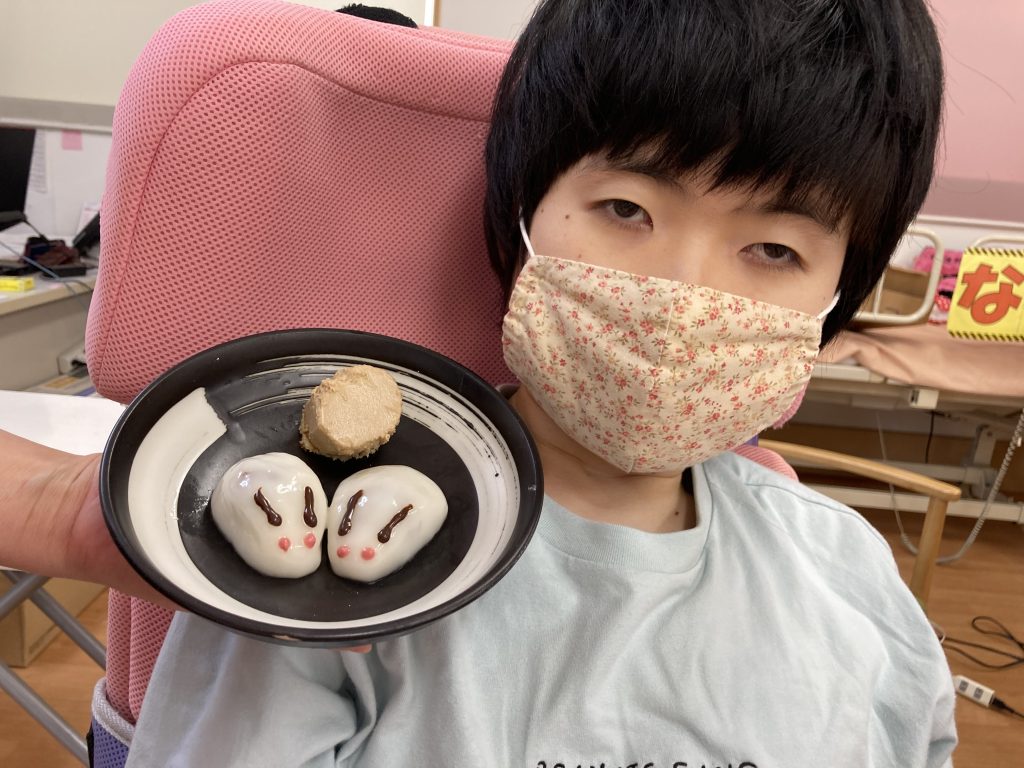 ぽらりす 施設blog 【ぽらりす】お月見クッキング🎑 2022年10月7日 2022年10月7日 Facebook Twitter はてブ 「かわいくおいしく作りましょう🎶」 まずは形を整えていきます😊何ができるか楽しみですね✨ 浮いてくるまでしっかりゆでます🎶 チョコペンで顔を描いていきます😊 完成しました❗❗とってもかわいいうさぎ🐇さんができました✨✨✨ かわいくて食べるのに迷いました💦おいしかったです❗😋 Facebook Twitter はてブ