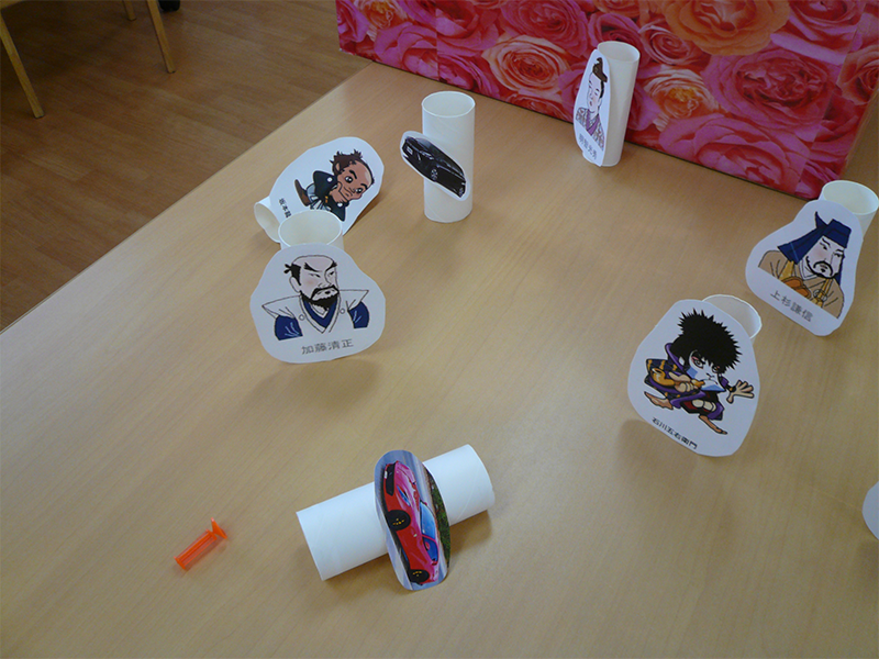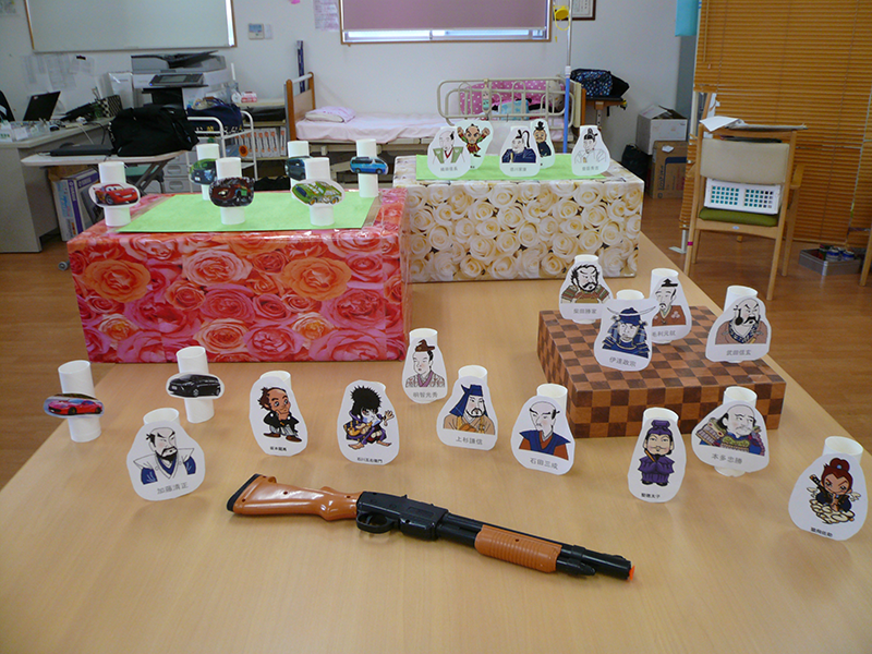 主役の好きな戦国武将や、送迎車で的を作りました。🏹