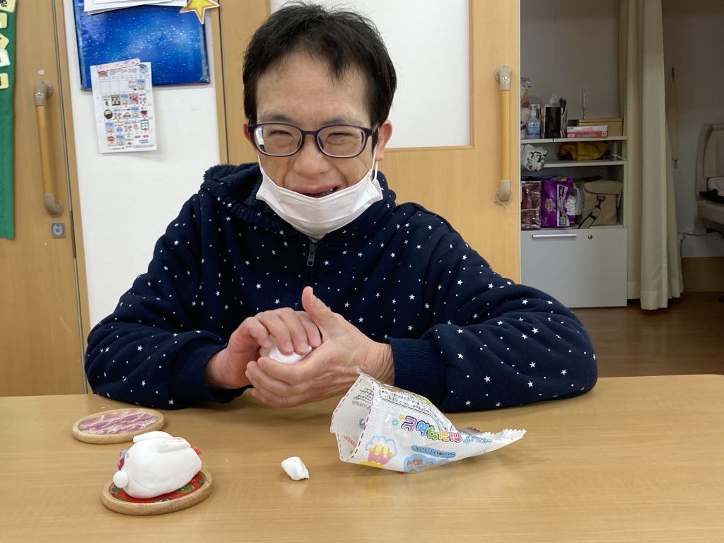 施設blog 【ぽらりす】みんなで干支作り 2023年1月5日 2023年1月5日 Facebook Twitter はてブ 「 来年の干支は? 」 まずはキレイな千代紙を台座に貼ります。「ぼくの選んだ千代紙、キレイでしょ✨✨✨」 紙粘土を使って干支作り。「どんな感じに作ろうかな?」すごく楽しそうです😀 形を整えます。「ここが大切なので真剣に作ります。」 色を付けたり、飾りをつけたり。「もうすぐ完成。」笑顔が溢れます😍 さーて。来年の干支は。。。そうです。うさぎです。うさぎなんです🐰🐰🐰🐰🐰🐰 Facebook Twitter はてブ