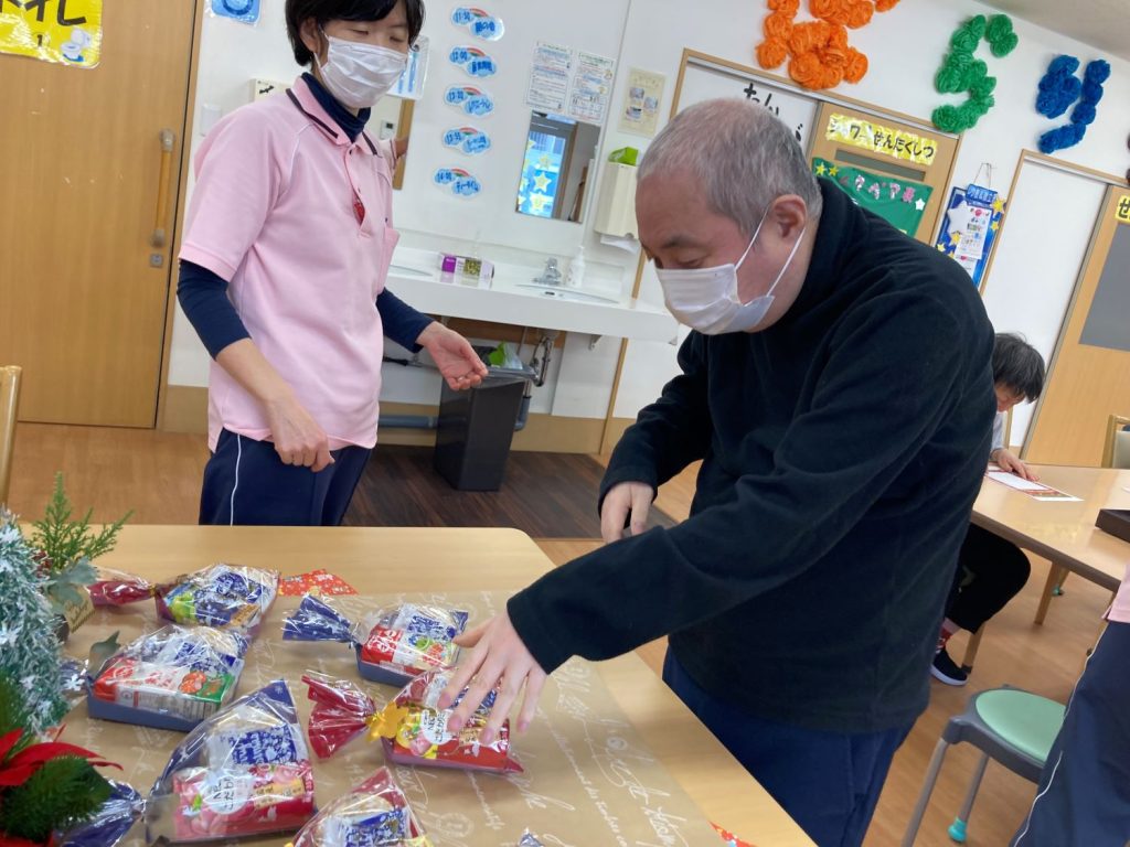 「クリスマスプレゼントもらったよ🎶ありがとう😊」 みんなでビンゴ大会しました。 プレゼントもゲットして、ちょっぴり照れておられます。