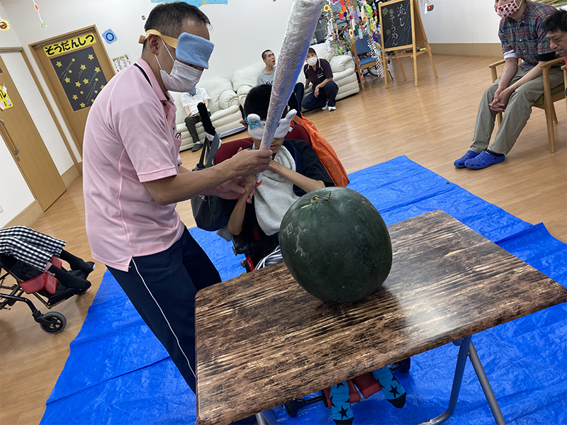 ぽらりす 施設blog 【ぽらりす】スイカ割り🍉 2021年8月5日 2021年8月5日 Facebook Twitter はてブ 夏をしっかり楽しもう!!🏄🏼♀️ 夏と言えば、スイカ割り!!🍉毎年恒例の行事です。 しっかり目隠しして😎準備 OK です^^ 「もう少し前!」😃みんなで声掛けして、スイカ🍉まであとちょっと... 「そこ!!!」😃大きく振りかぶって! 「やったー!!」キレイに割れました♪🍉 みんなでおいしく頂きました^^😋 スイカ割りをして🍉スイカを食べて、🍉夏を感じて大満足です♪😋 Facebook Twitter はてブ