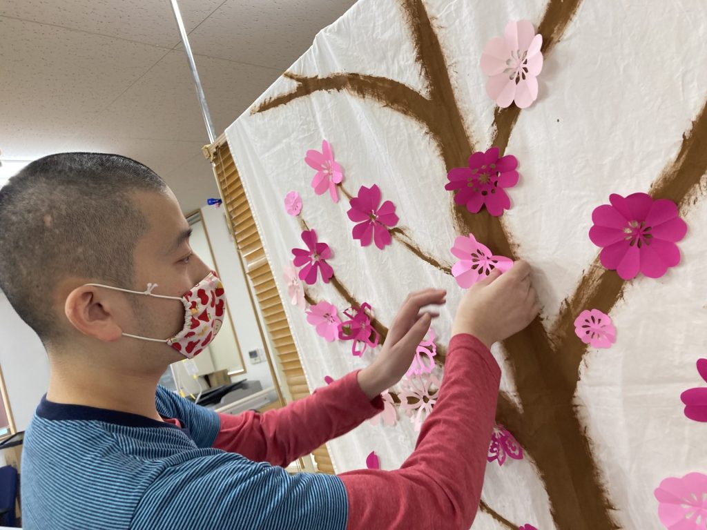 ぽらりす 施設blog 【ぽらりす】桜を咲かせましょう😊パート2 2023年4月10日 2023年4月10日 Facebook Twitter はてブ 「桜が満開になりました🌸」 いよいよ折り紙で作った桜を飾っていきます😊 少しづつ花が増えてきました😊咲き始めです🎵 もう少しで満開になりそう🎵満点の笑顔でとても嬉しそうです🌸 最後の仕上げは任せて下さい!! ついにぽらりすの桜が満開になりました🌸色んな色と形の桜が沢山で、とても素敵です🎵皆さんとても満足そうに眺めていらっしゃいました😊 Facebook Twitter はてブ
