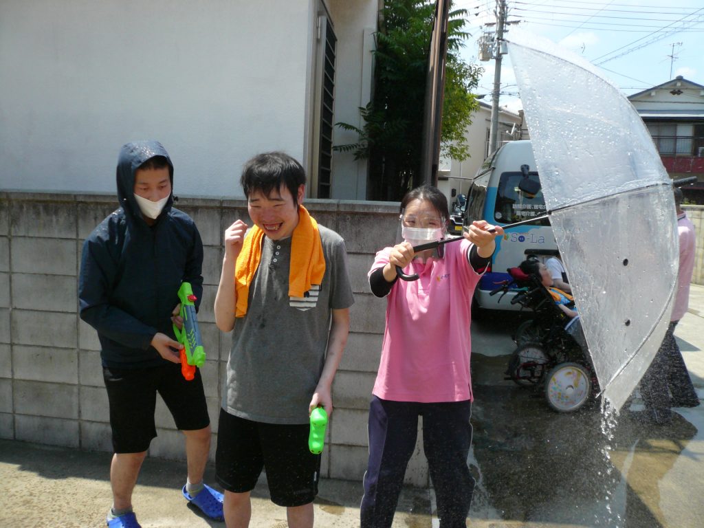 施設blog 【ぽらりす】水遊び 2022年7月29日 2022年7月29日 Facebook Twitter はてブ とてもいい天気でした♪ 夏の行事と言えば水遊びもあります^^良い天気で暑かったので最高でした♪ 濡れないように傘を盾にして防御します!!とっても楽しそうです^^ 日陰で休憩しながら楽しみます^^濡れても着替えがあるから大丈夫です☆ 傘と防水のひざ掛けで挑みます!無敵です^^ しゃぼん玉もしました♪夏の行事前半が終わりましたが、後半も沢山楽しみます!! Facebook Twitter はてブ