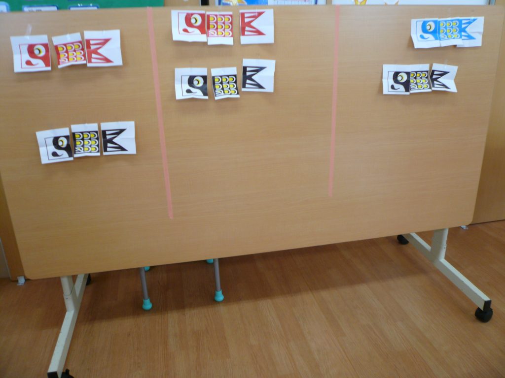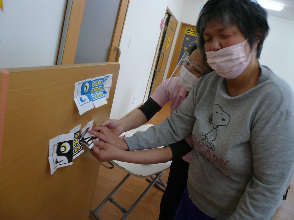 ぽらりす 施設blog 【ぽらりす】鯉のぼり🎏を完成させましょう🎵 2022年5月13日 2022年5月13日 Facebook Twitter はてブ 「皆で協力しました😀 」 まずはくじを引いて鯉のぼり🎏のどの部分が出るか見てみます😄 しっぽが出ました✨色は黒です❗❗ これは頭の部分ですね❗❗青い鯉のぼりです😄 青い鯉のぼりが完成しています🎵黒い鯉のぼりはしっぽをつけて完成ですね✨ 赤、青、黒の鯉のぼり🎏が沢山泳いでいます🎵皆で協力して完成させました🤗 Facebook Twitter はてブ