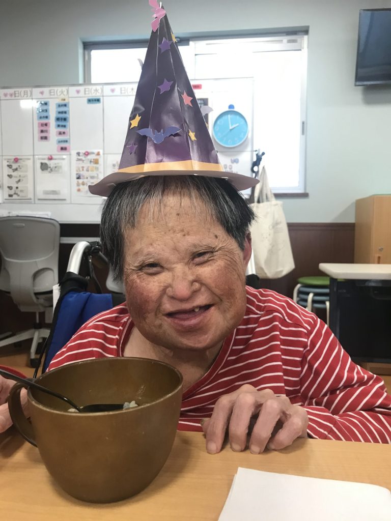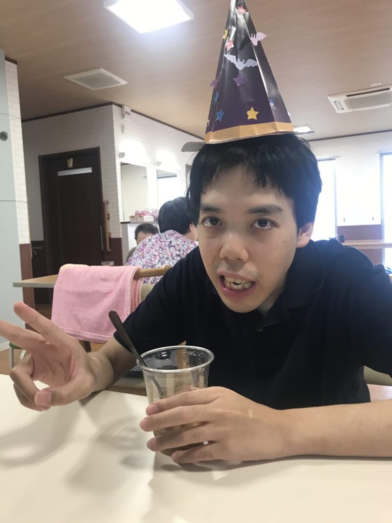 皆さんと一緒に作った、とんがり帽子でカッコ良くピース✌️