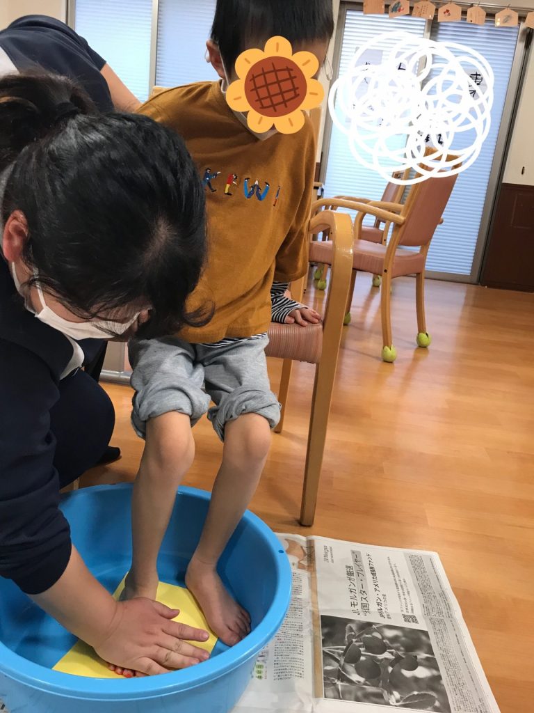 Juno 【Juno】室内遊び 2023年1月22日 2023年1月22日 Facebook Twitter はてブ 「雨の日も楽しいレクリエーション🎵」 『足形アート』を作りました👣イスに座り足裏に絵具を塗り塗り🌟 自分で塗って最後は職員に仕上げてもらいます❕「こしょばいよ~~💦」 立ち上がり「エイッ❕」と力強く踏み綺麗に形がとれました😀顔を描いて『足形アート』完成です✨ 別の日には『小麦粉粘土』あそびをしました🎶カラフルな色をつけて握ってみたり伸ばしてみたり コロコロ転がしてみたりと感触に夢中になり遊びました🎶 Facebook Twitter はてブ