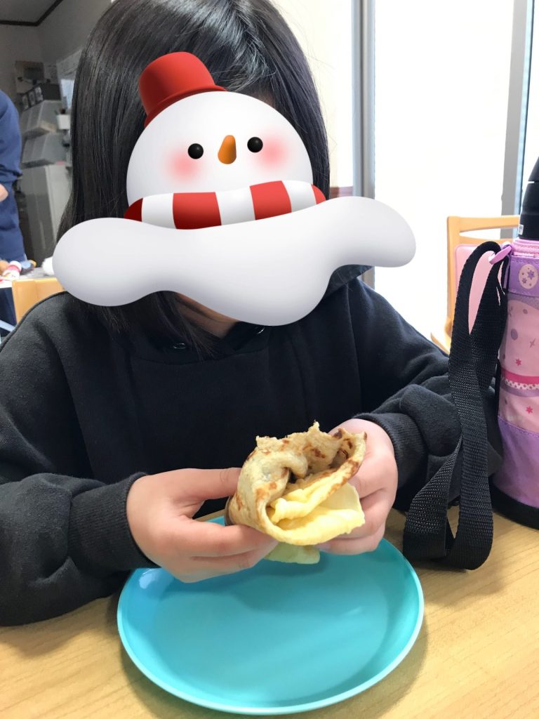Juno 【Juno】甘いおやつレク🍌 2023年1月19日 2023年1月19日 Facebook Twitter はてブ 「みんな大好き💛」 この日は『クレープ作り』をしました。職員がたくさんの生地を焼き部屋中いい香りです😊 子どもたちは好きなトッピングを指差しクルっと巻いてできあがり🎵食具を使ってみたりガブっとかぶりついてみたり(^ω^) 別の日には『雪見大福で雪だるま』を作りましたよ⛄ 自分だけのプレートを用意しチョコチップで目玉をつけて完成❕ 生クリームのトッピングは雪だるまの頭と体の接着にも使われたくさん食べましたよ😊寒い冬に食べるアイスクリームもまたおいしいね🌟 Facebook Twitter はてブ