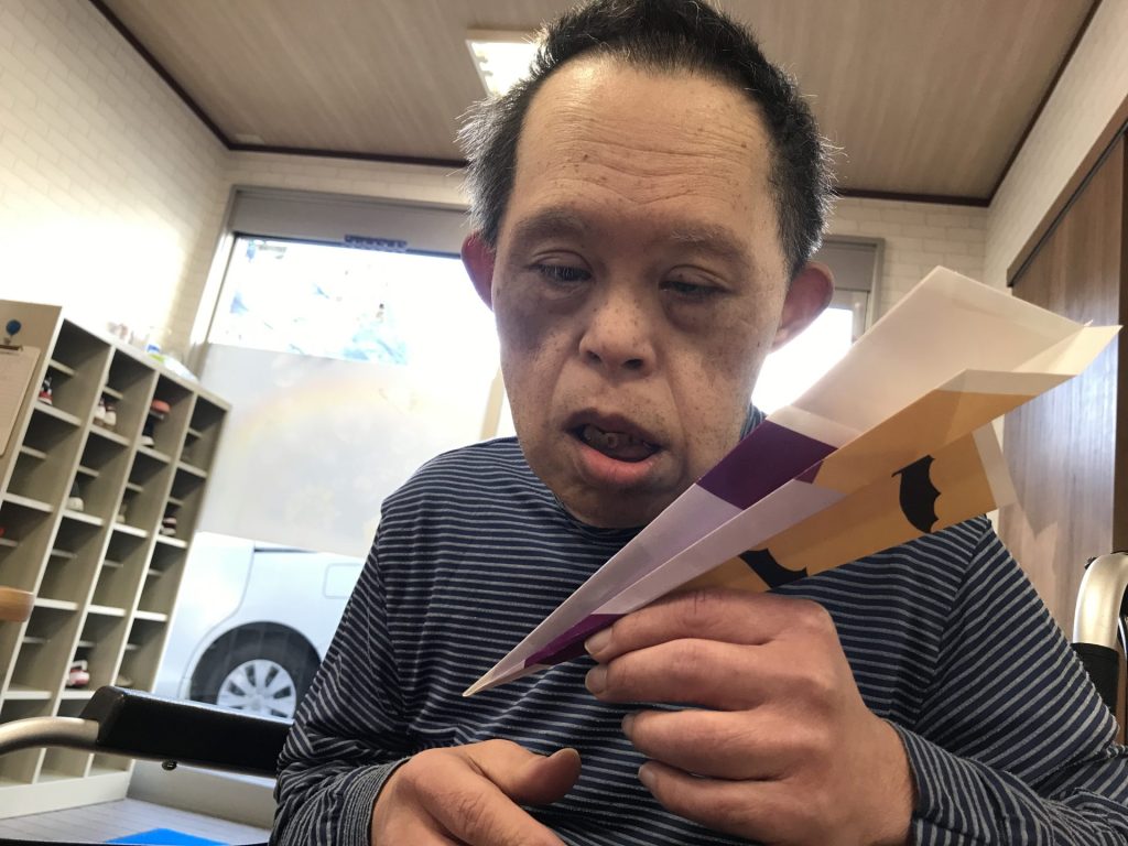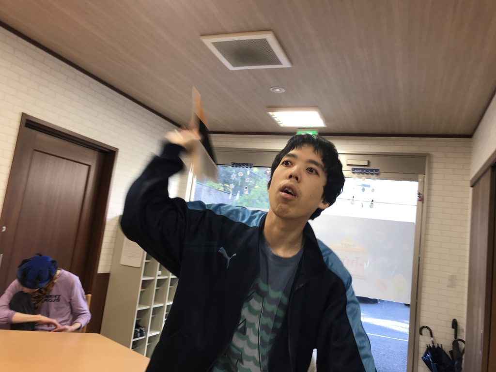 「次は僕の順番❕」と、勢い良く紙飛行機を