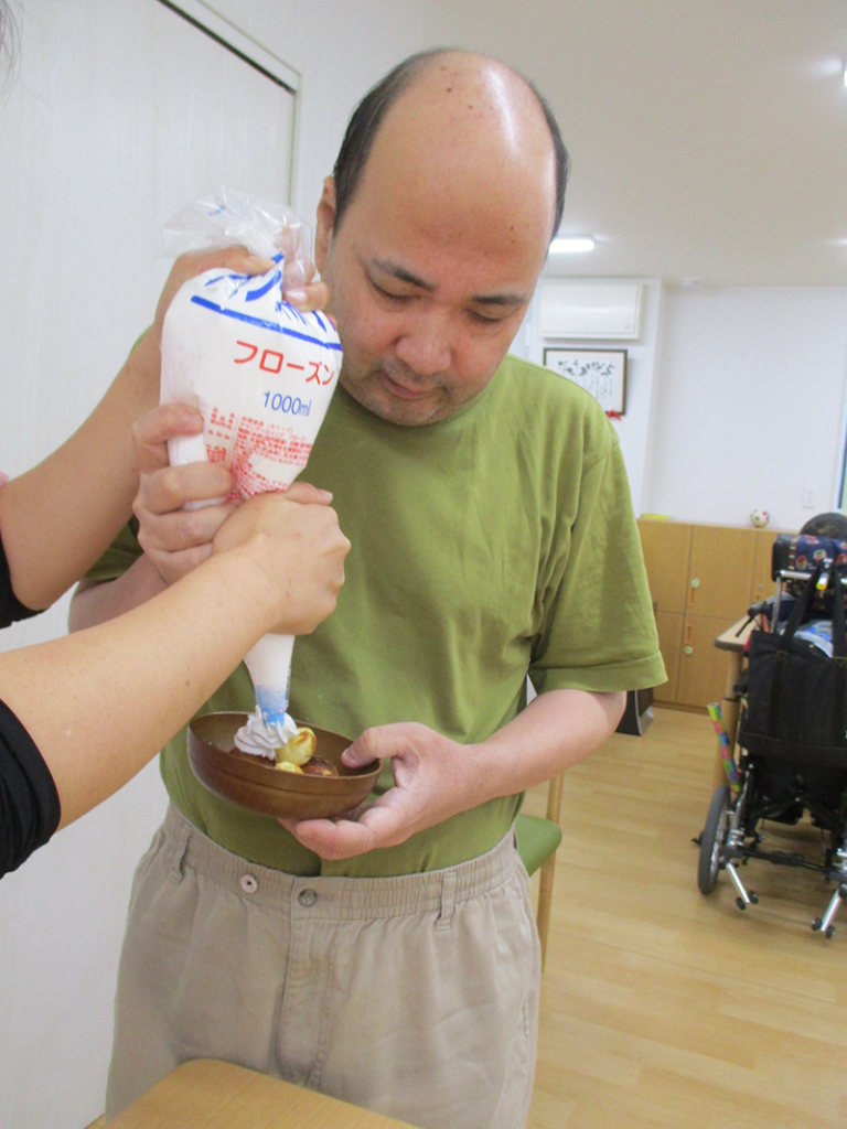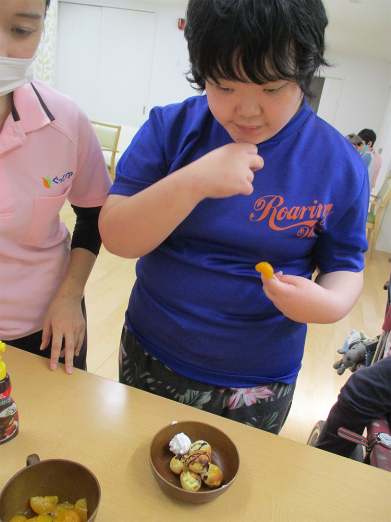 Ma-Na 施設blog 【Ma-Na】お月見クッキング 🌇 2020年10月8日 2020年10月8日 Facebook Twitter はてブ 9 月 15 日はお月見🌕 ベビーカステラを団子🍡に見立ててチョコソース🍫や生クリーム、みかん🍊を盛り付けます 美味しそう!!😍 チョコソースたっぷりかけたよ🍩 みてみて!!キレイに盛り付けできたよ~🍦 やったー!😋おやつ楽しみだ 大好きなみかん😊どこに置こうかな? 美味しそうに出来たわよ😋 生クリーム🍦たっぷり乗せよう♡ どんな味がするんだろう??😀 Facebook Twitter はてブ