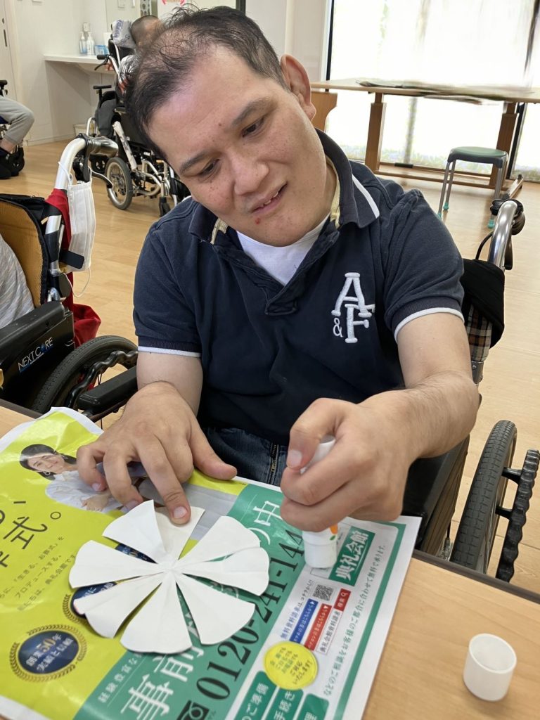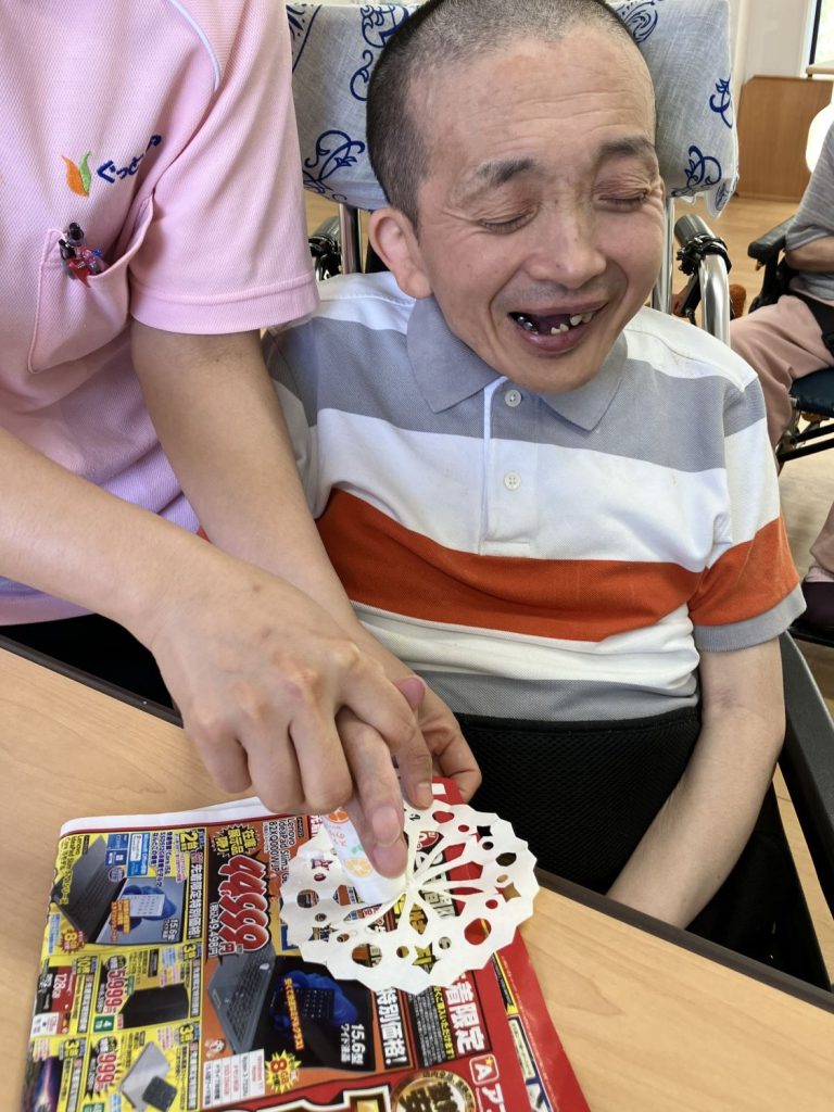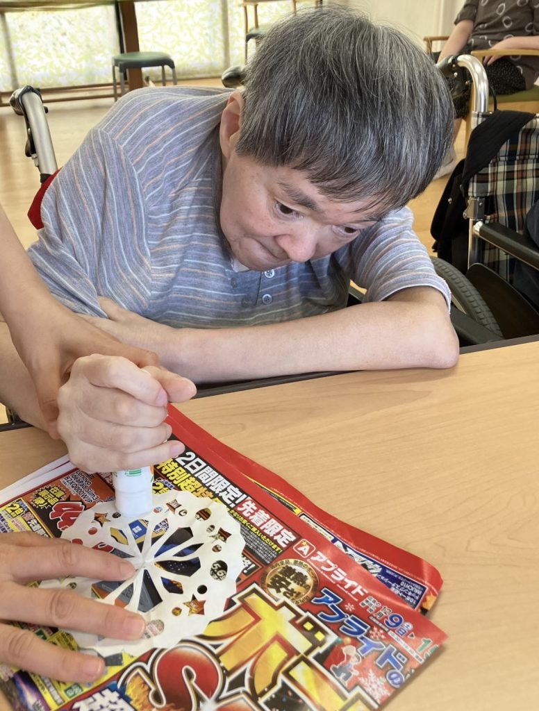施設blog 【Ma-Na】 7月の壁画作成 2024年8月9日 2024年8月9日 Facebook Twitter はてブ キレイな花火が上がりました~✨ 7月の4週目は8月用の壁画を制作しました。色紙を折ったり切ったりして花火を作ります。 切った色紙に糊を付けていきます。細かい模様なので破れないように慎重に行います。 細く切った色紙で輪っかを作り繋げ、また違ったデザインの花火も作りました🎵 綺麗な模様の花火が出来ました☆ 皆さん笑顔いっぱいです😊とても楽しい壁画作りでした! Facebook Twitter はてブ