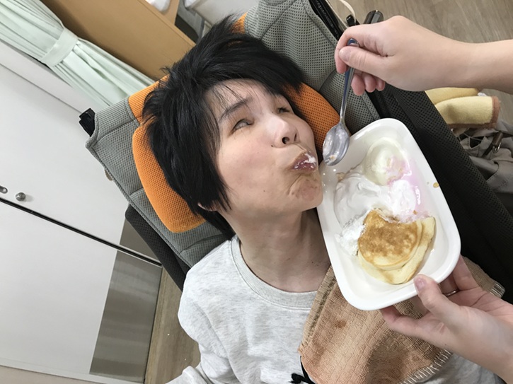 今日はふわふわパンケーキにホイップクリームとアイスを添えてますよ