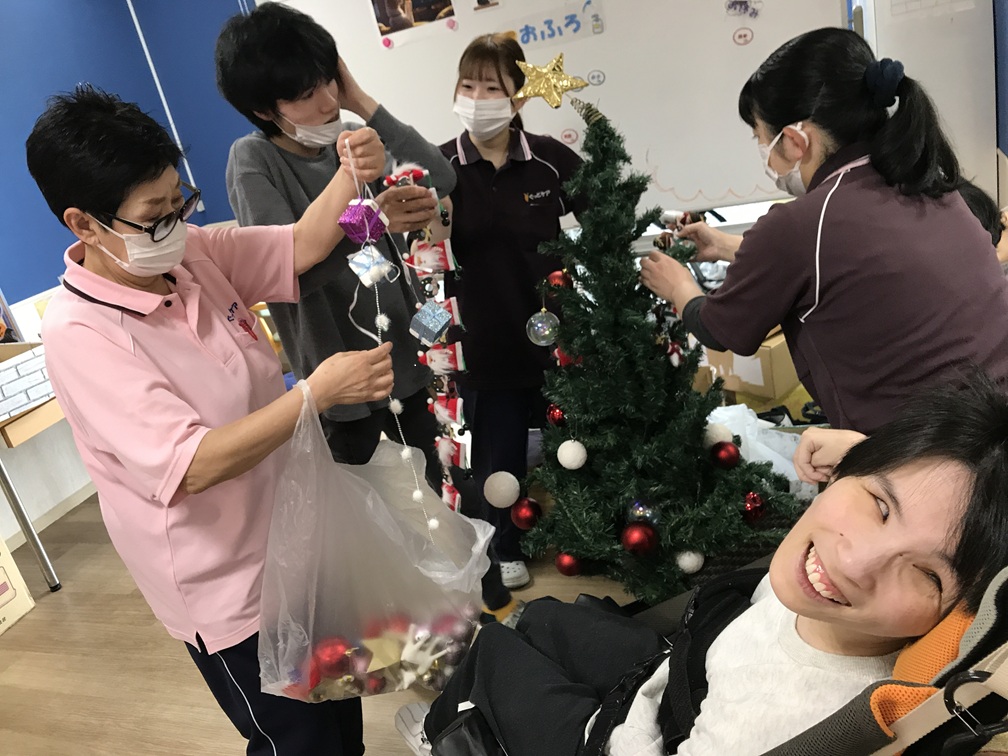 一年ぶりにクリスマスツリーを出しみんなで飾りつけを行なっています!