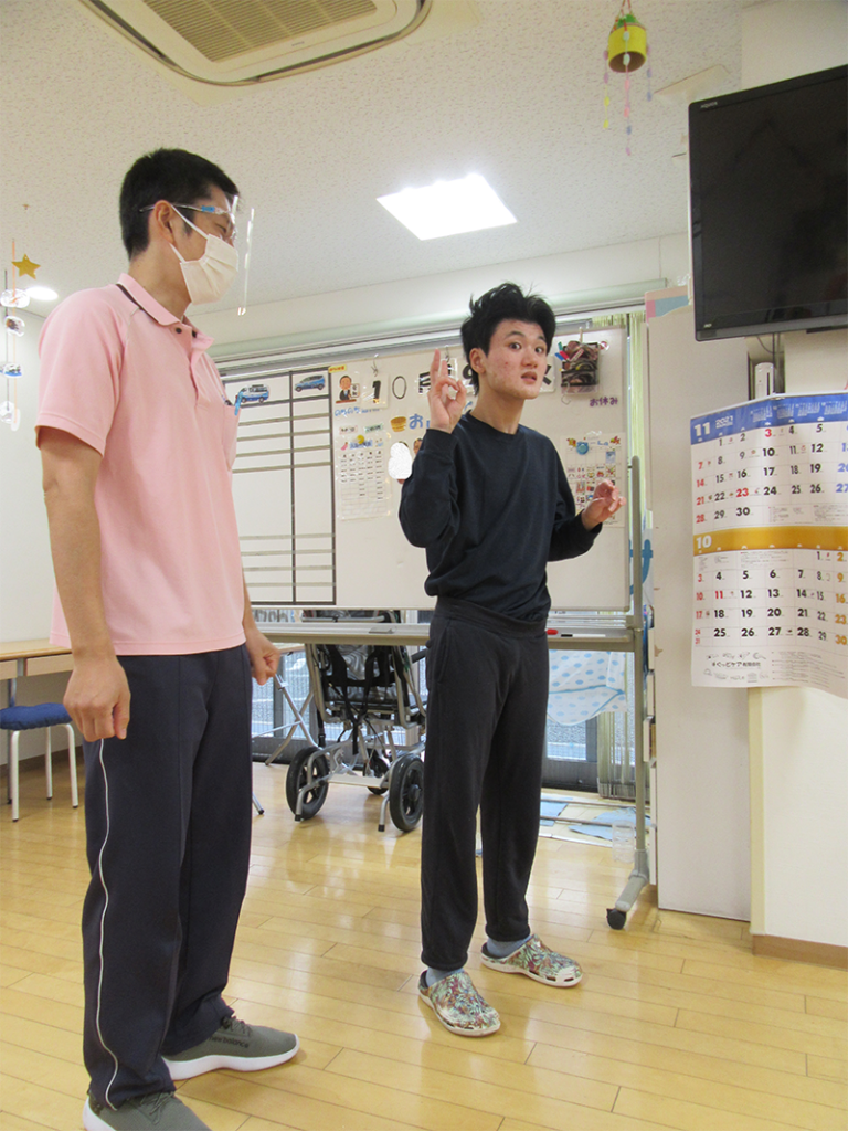 こうやって、こうやって・・・スタッフとペアになり協力して表現して下さいます。👩🏼‍🤝‍👩🏻
