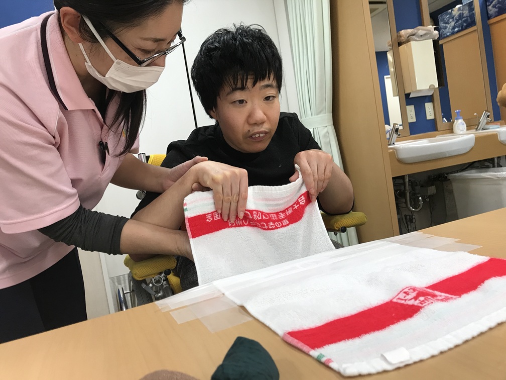 お!まるで”タオルはこうやって持つんですよ”というお手本のような持ち方ですね^^