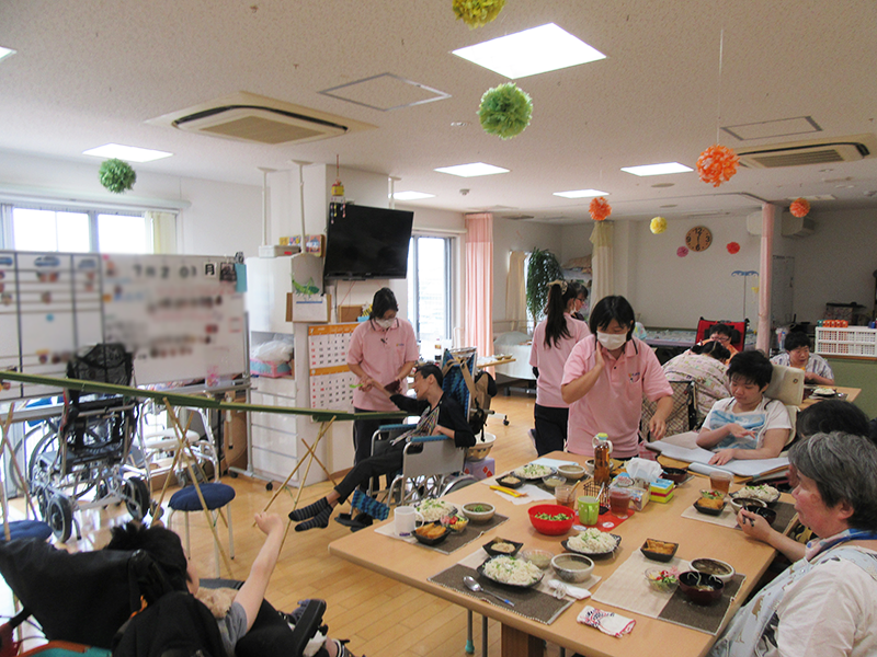 So-La 施設blog 【So-La】昼食レクリエーション🥢 2020年8月11日 2020年8月11日 Facebook Twitter はてブ 流しそうめん 楽しみました🍜💨 本日のメニューは・ナスと豚肉🍆🥓の付けタレ ・いなり寿司 ・そうめん で~す♡🍜 デザートは・・・チョコレートケーキ🍫生クリーム添え✨ 流れてきたそうめんを落とさない🥢ように掬っています! 「来たぁ~! 私がすくっちゃうよ!」😃 みんなでワイワイ👨👩👦👦食べながら流しながら楽しみました🤗 食後のデザートもいっただきま~す♡🎂美味しく楽しい 1 日でした Facebook Twitter はてブ