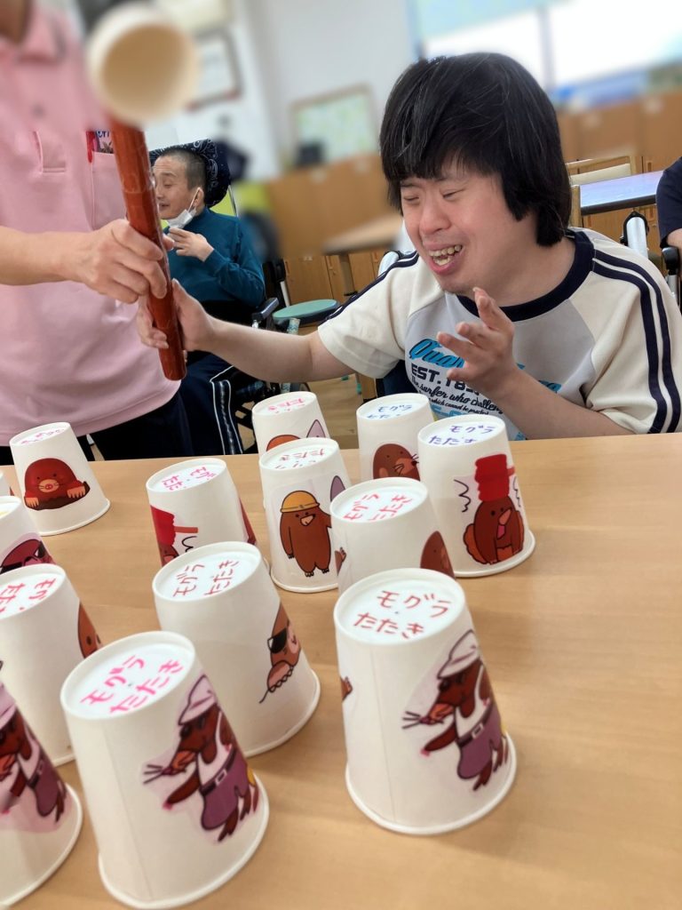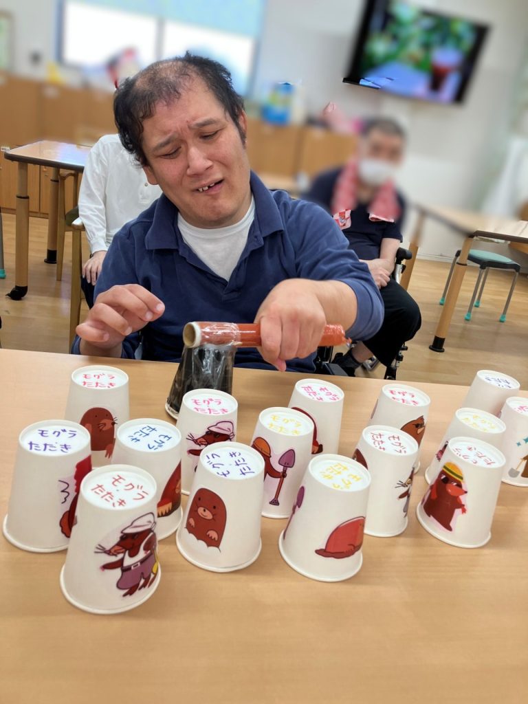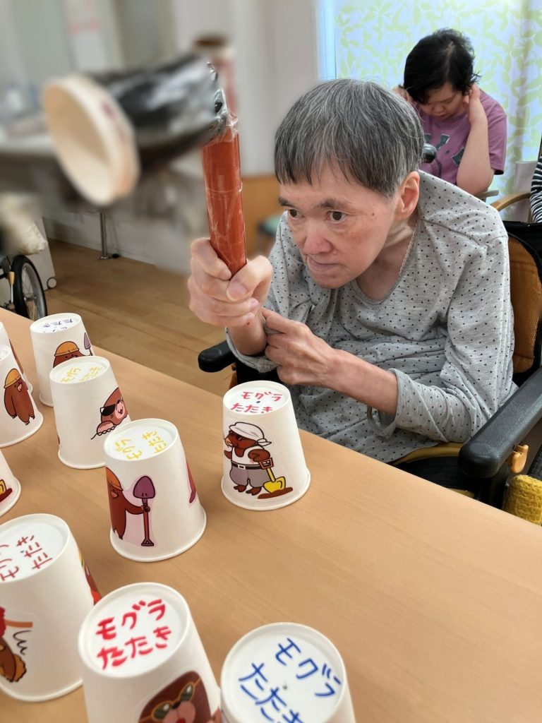 施設blog もぐらたたきゲーム 2025年10月15日 2025年10月15日 Facebook Twitter はてブ たくさん取るよ~!(^^)! 10月2週目のレクは、もぐらたたきゲームをしました。男性チームと女性チームに分かれて勝負です‼どちらのチームが勝つかな? 絶対に負けないよ❢頑張るよ~(*^-^*) わ~、結構難しいな( ^ω^)・・・でも、あきらめないぞ~!! 私は慎重に・・・。一個ずつ取っていこう。負けないよ❣ 男性チームは負けてしまったけど、かわいいもぐらがいっぱいで楽しかった~!(^^)! Facebook Twitter はてブ