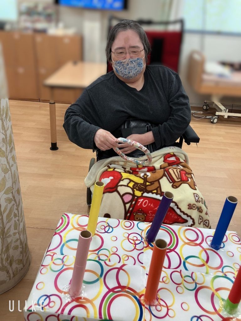 施設blog レク 『 輪投げ 』😊 2025年12月17日 2025年12月17日 Facebook Twitter はてブ いくつ入るかな(^^)/ 12月1週目のレクでは、輪投げを行いました。スタッフ手作りのカラフルな台を使って、みんなで楽しみました❢ どこに投げようかな…?絶対に高得点取るよ~!! ここがいいかなぁ。投げなくても手がとどいちゃうな!(^^)! よ~し!ねらいを定めて・・・。投げるよ~(^^)/ 子供のころを思いだすわ💓。上手に投げれるかなぁ(*^-^*) Facebook Twitter はてブ