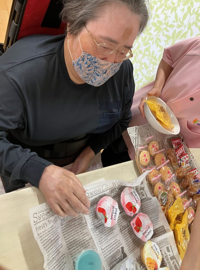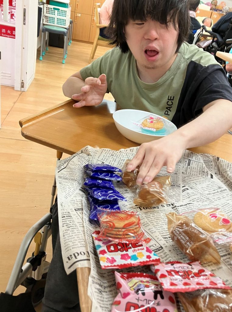 『見て♡見て♡』と沢山の大好きなお菓子を笑顔で見せて下さいました。 選んだ後は、皆さんで美味しく頂きましたー🍪
